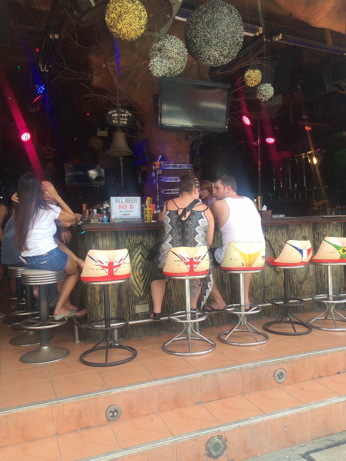 Eşyaları otele bırakır bırakmaz kendimizi Patong Plajı’na atalım dedik. Patong plajı otelden yürüyüş mesafesiyle 10 dakika kadar ama tabii bu sure uzadı çünkü hem ilginç dekorasyonlu barlara hem de hediyelikçilere bakıp fotoğraf çekerken baya bi oyalandık.