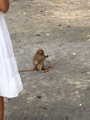 Kocaman, ulu bir yamacın dibinde onlarca maymunun bulunduğu Monkey Cave’deyiz. Maymunlar bir yana, manzara inanılmaz. Zaten sürekli birileri maymunlara meyve verdigi icin başta bu aktivite pek ilgimizi çekmedi ve seyretmekle yetindik; ancak o minicik elleriyle muzu ve rambutanları yemelerini görünce dayanamadık ve biz de bir poşet meyve alıp minikleri besledik. Daha büyükler de vardı ama benim için en etkileyici olanı kucağında bebeğiyle atlayıp zıplayan maymunu izlemekti.