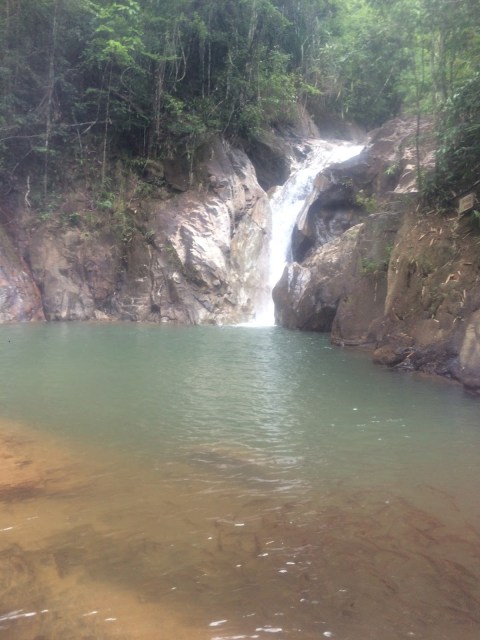 Neyse efendim, fillerden sonra sıra geldi şelaleye. Yeni durağımızda, yaklaşık 150 metrelik bir “trekking”ten sonra küçük bir şelaleye vardık. Hava azıcık kapalıydı ama öncü kuvvetler olarak akımı başlattık ve kendimizi gölete attık. Balıklardan rahatsız olur musunuz bilmiyorum ama ben onlarla aynı gölette gezinmekten çok mutlu oldum 🙂 Burada kısa bir sure yüzüp suyun keyfini çıkardıktan sonra yeniden yollara düştük.