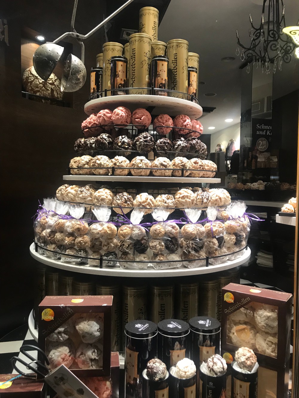 Burada Schneeballen adi verilen kuru biskuvi toplari var, o cok meshur bir tatli; serit serit biskuvileri yagda kizartip cift basli kepceyle top top aliyorlar, uzerine pudra sekerini basip servis ediyorlar (orijinali pudra sekerli ama cikolata soslu ve karamelli gibi secenekleri de mevcut). Bence o enfes Alman tatlilarindan sonra Schneeballen’in hicbir ozelligi yok, ama alin bir top, yol arkadaslarinizla paylasin, denemis olursunuz en azindan. Zuckerbäckerei, yaninda kahve ile denemek icin guzel bir adres olabilir.