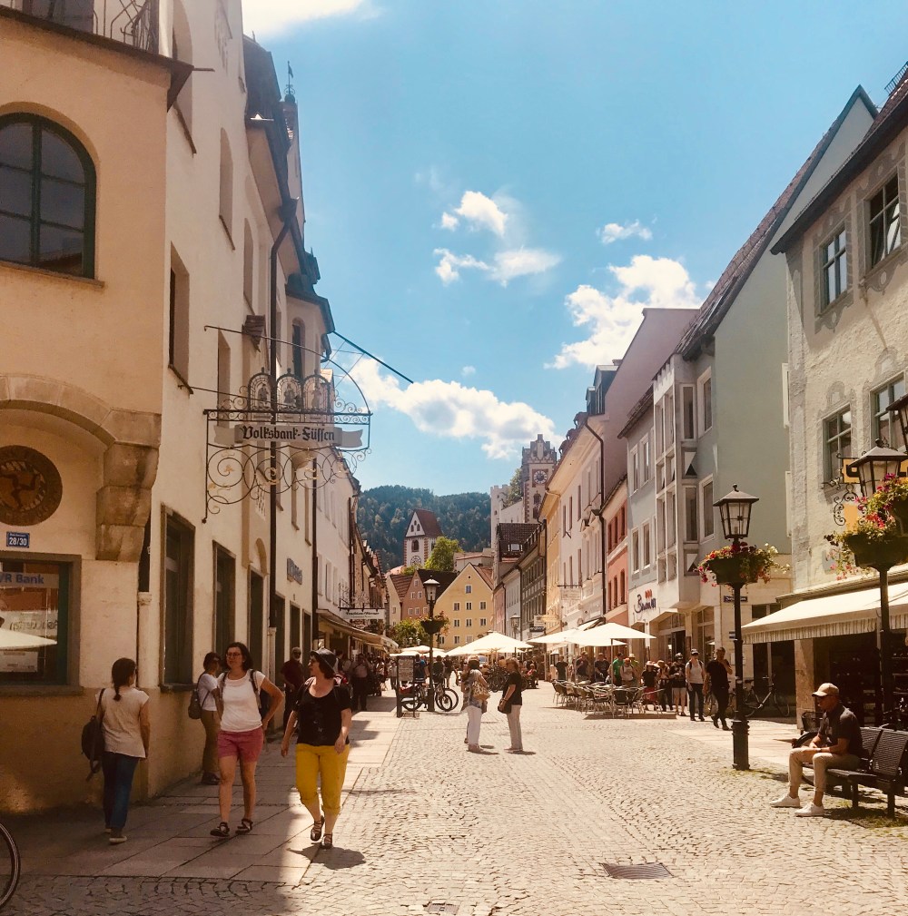 Romantik yolu bitirdigimizin resmi olan Füssen’de gorulecek iki yer olan Neuschwanstein ve Hohenschwangau satolarini zaten bitirdik, sonrasinda da merkeze gidip biraz yuruyup alisveris yaptik ve serin golgesi olan bir kafe bulup orada dinlendik. Füssen’in nufusu yaklasik 15-16 bin civari. Keman yapimiyla unlu bu kentte Altstadt’i gezin, St.Mang bazilikasini ve Hohes Schloss’u (kale) gorun derim.