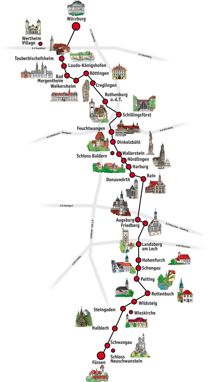 Bizim rotamiz kuzeyden guneye, yani Würzburg’da baslayip Füssen’de bitecek sekilde planlandi. Tam tersini de yapabilirsiniz. Fakat kuzeyden baslamaniz daha iyi, cunku guneyde son duraginiz olan Füssen’e yakin Neuschwanstein satosu ile altin vurus yapip rotayi bitirmeniz, ilk once satodan baslayip sonra hayal kirikligi yasamamaniz icin onemli.
